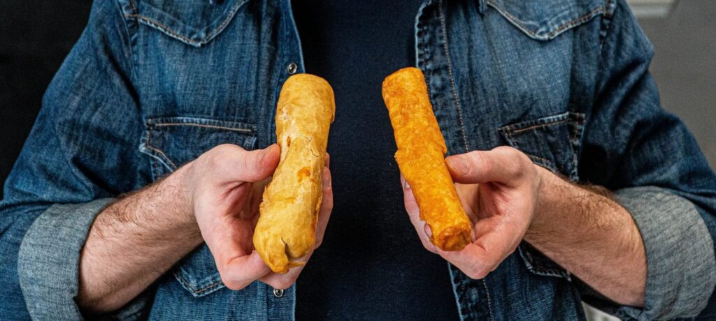 For at opnå den tynde, sprøde tekstur, som kendes fra nogle snack-versioner, kan man bruge tynde tortillas eller endda forårsrulledej. Fyldet skal pakkes tæt ind i tortillaen for at forhindre det i at løbe ud under tilberedningen. Når de er rullet, kan de enten frituresteges for maksimal sprødhed (og fedme) eller pensles med olie og bages i ovnen for et lettere resultat.