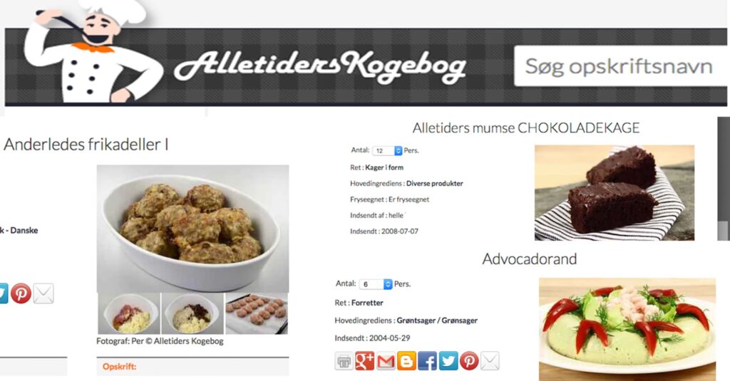 | Opskriftstyper | Spænder fra kød, fisk, til overdådige salater, brød og kager. |