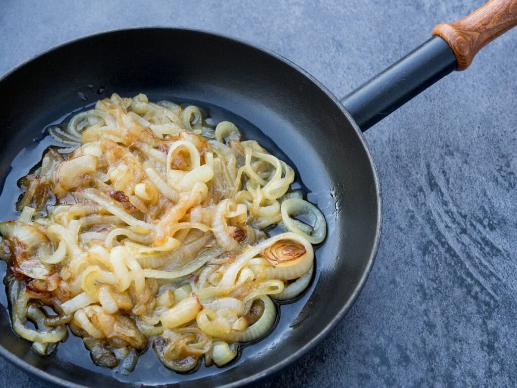- Brug nok fedtstof: Vær ikke fedtet med smørret (eller olien). Fedtstoffet er essentielt for at løgene steger bløde og karamelliserer korrekt uden at brænde på.