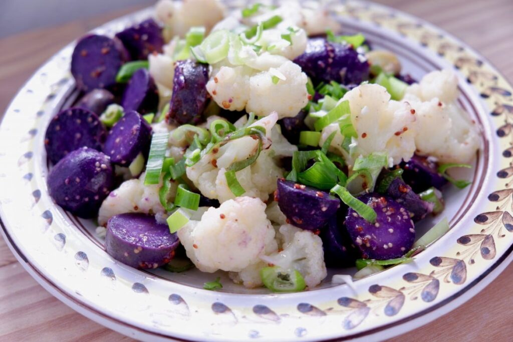 - Kartoffelsalater: Deres farve giver et fantastisk visuelt løft til enhver kartoffelsalat, uanset om den er baseret på mayonnaise eller vinaigrette. En kartoffelsalat med en blanding af hvide og blå kartofler er utrolig dekorativ.