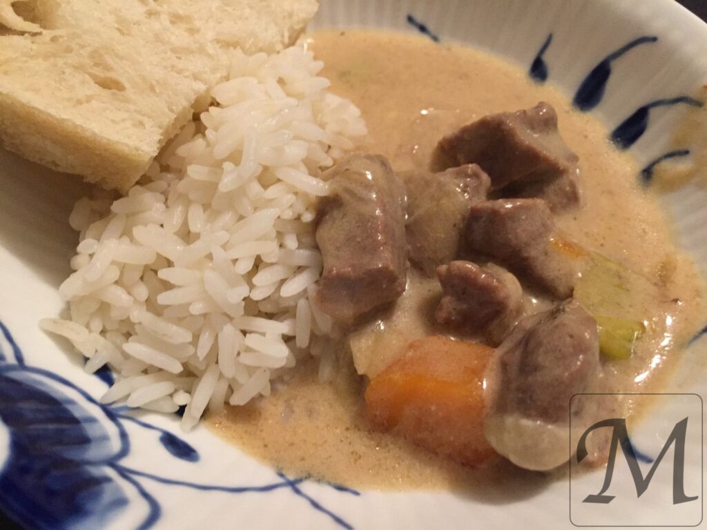 Saucen serveres typisk varm, ofte drysset med frisk hakket persille eller kørvel. Ris er en klassisk ledsager, da de absorberer saucen smukt, men kartofler eller en god brød kan også være passende.