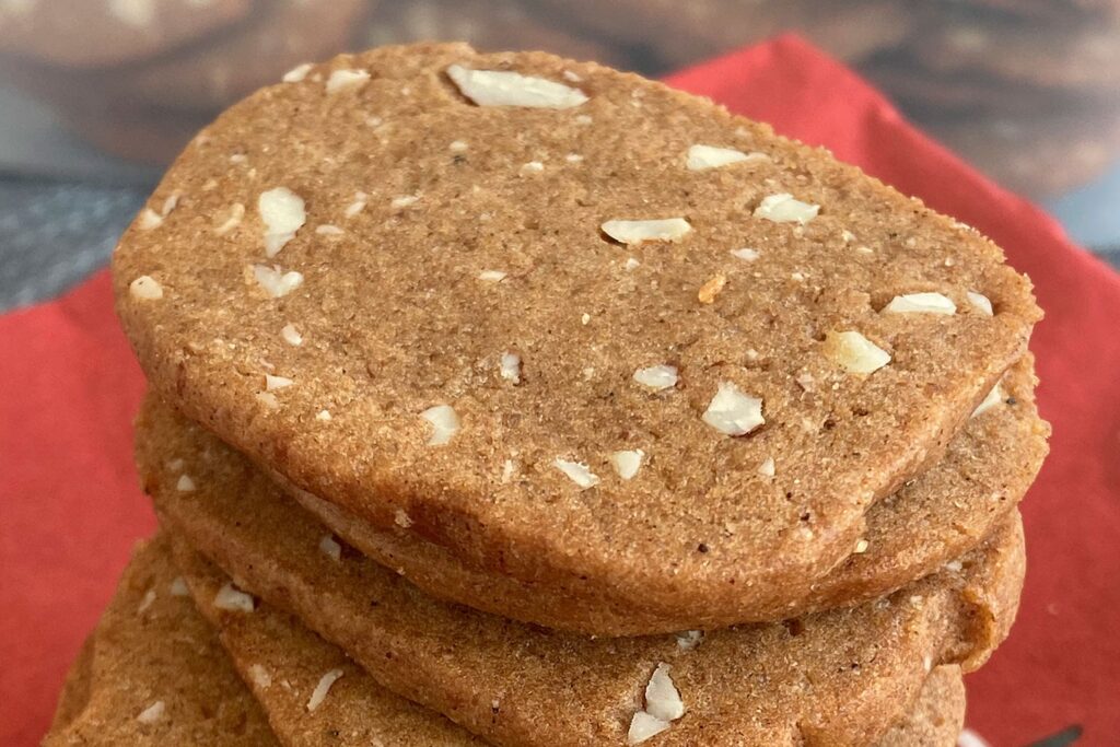- Tykkelse på kagerne: Brunkager skal skæres meget tyndt for at blive rigtigt sprøde. En tykkere kage vil naturligt have sværere ved at tørre tilstrækkeligt ud under bagningen.