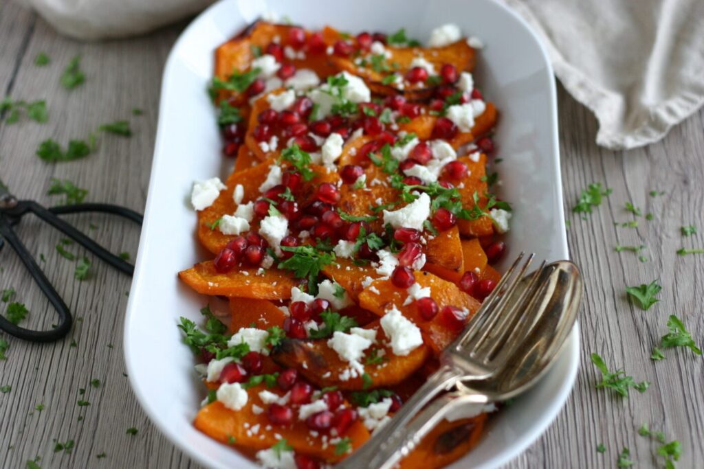 - Hasselback Butternut Squash: Inspireret af hasselback kartofler. Halvér squashen, fjern kernerne. Rids kødsiden på tværs fra top til bund med tætte mellemrum, men uden at skære helt igennem. Gnid med olie, salt og peber. Bag ved 200 grader i cirka 40 minutter. En smuk og velsmagende variant!