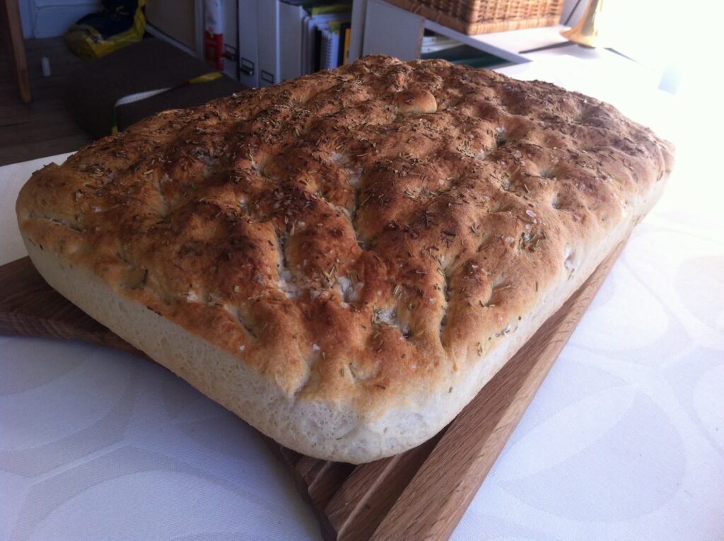 - Farve: Focacciaen skal have en smuk, dyb gyldenbrun farve på toppen og langs kanterne. Den skal ikke se bleg ud.