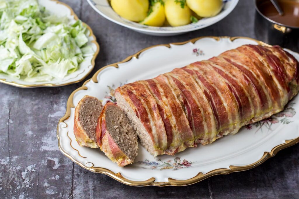- Mælk Under Stegning: Nogle opskrifter foreslår at hælde mælk over haren undervejs i stegningen for at holde den fugtig. Vær opmærksom på, at dette kan give hvide aftegninger på overfladen af farsbrødet, hvilket måske ikke er det pæneste ved servering. Hvis du ønsker en ensartet, gyldenbrun overflade (udover baconen), kan det være bedre at holde al væsken i bunden af fadet som beskrevet i hovedopskriften.