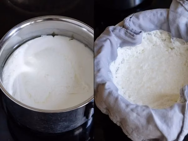 A: Denne specifikke opskrift er baseret på kærnemælkens naturlige syreindhold. Hvis du bruger almindelig mælk (letmælk, sødmælk), skal du typisk tilføje en syre som citronsaft eller eddike, eller bruge osteløbe, for at få mælken til at skille. Processen og resultatet vil også være anderledes.