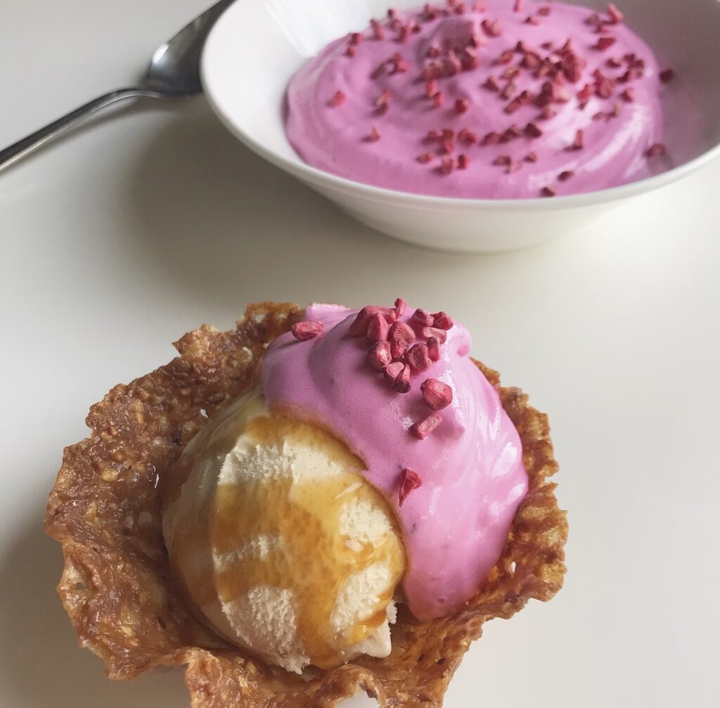 - At drysse over kager, pandekager, vafler og frugtsalat som en simpel, dekorativ sødme.