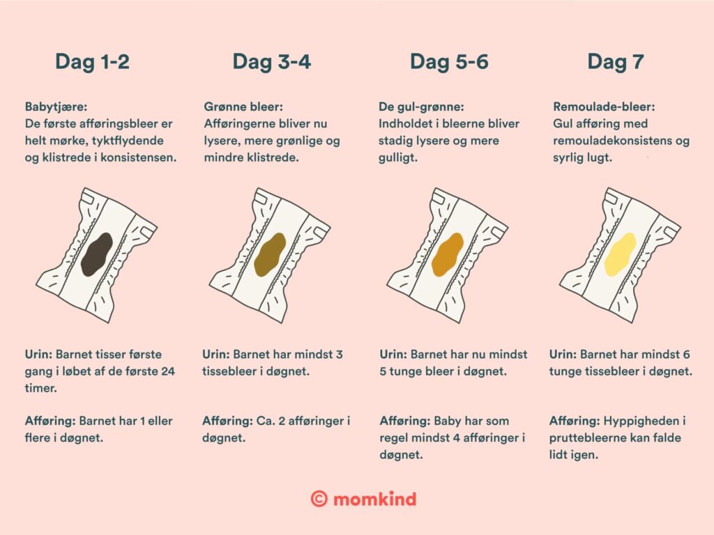 • Tisser meget sparsomt – færre end 2-3 godt våde bleer i døgnet for små børn.