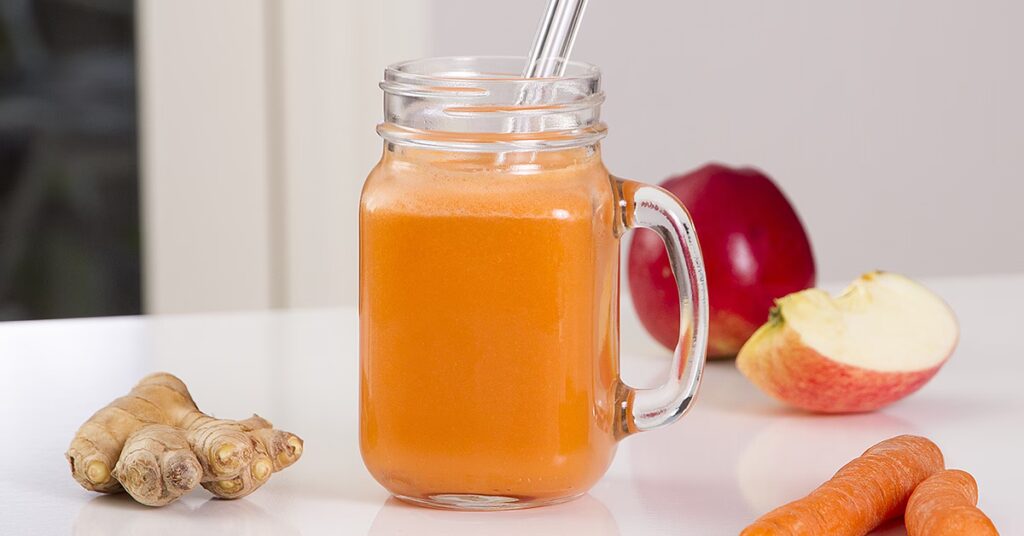 • Æble: Tilføjer sødme, der blødgør ingefærens intensitet. Vælg søde æbler som Fuji eller Gala. Fjern kernehuset.