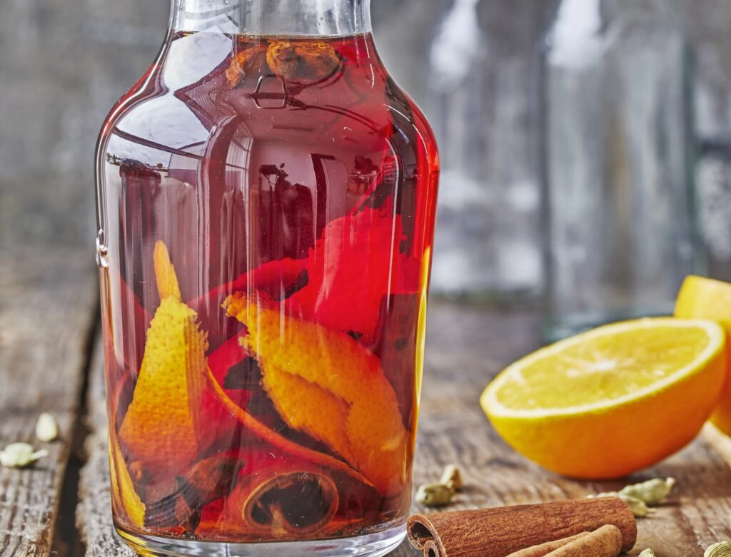 Populære ingredienser til hjemmelavet snaps inkluderer: