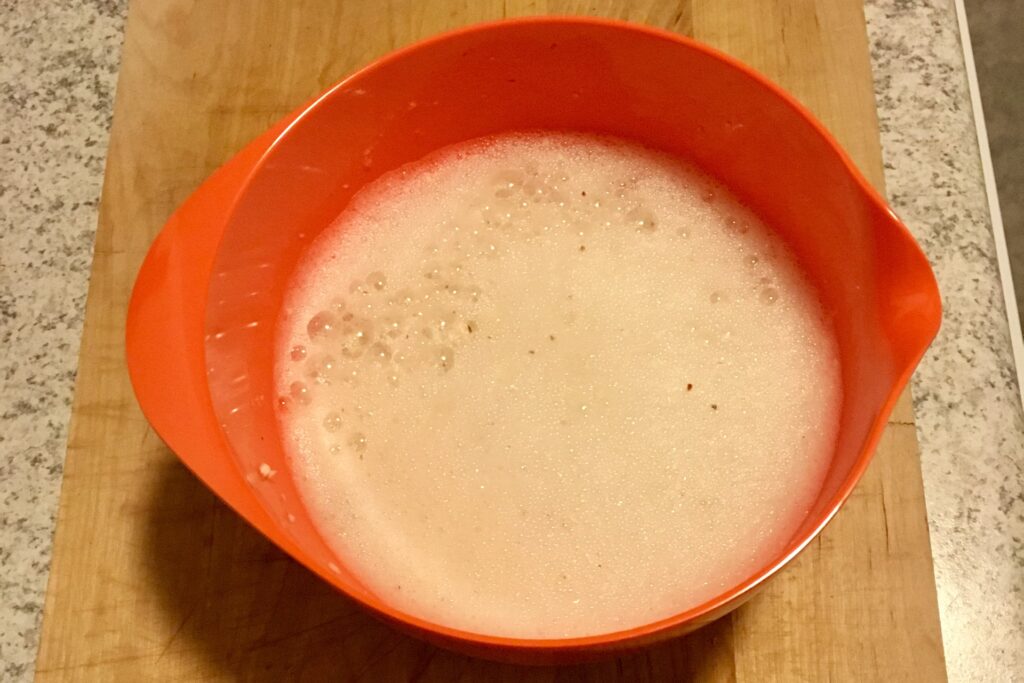 - Vandet bliver øjeblikkeligt mælket og skummende. Sæben er klar til brug med det samme.