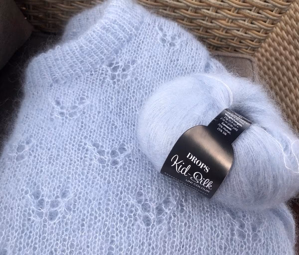 Alternativt kan Super Kid Mohair strikkes alene. Når det strikkes alene, typisk på pinde mellem 3.0 mm og 4.5 mm, skaber det en let og luftig struktur. Dette gør det ideelt til projekter som lette sweatre, sarte tørklæder eller sjaler, hvor garnets fine kvalitet og luftighed virkelig kommer til sin ret. Den anbefalede pindestørrelse på 3.0-4.5 mm giver en god indikation af, at garnet kan strikkes både tættere for en mere substansfuld lethed eller løsere for maksimal luftighed og et mere transparent udtryk.