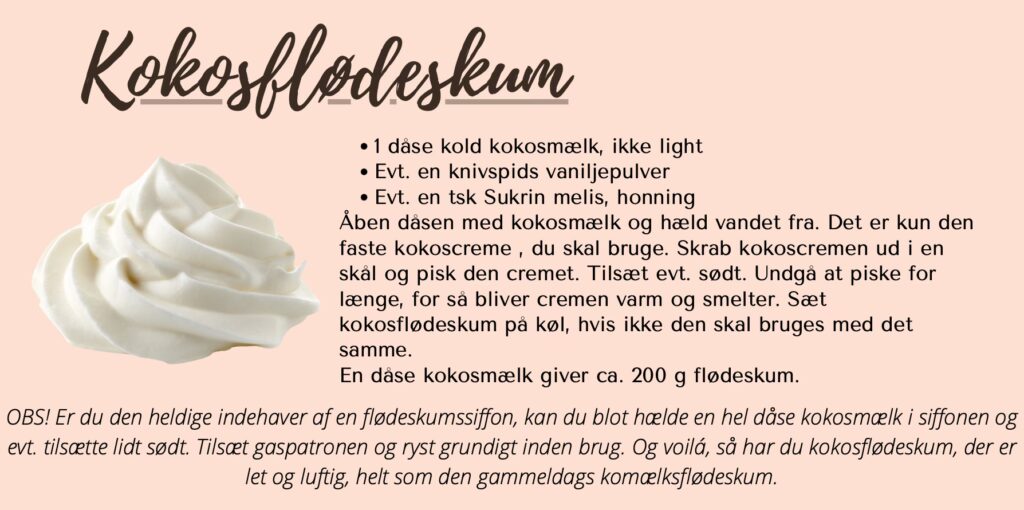 • Brug en kold skål og kolde piskeris, når du pisker kokosflødeskum.