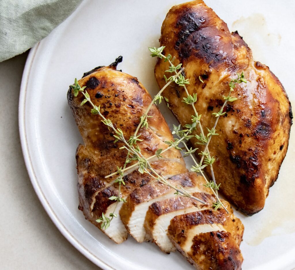 - På grillen: På grillen skal marinerede kyllingestykker have ca. 12-13 minutter ved direkte varme (afhængig af tykkelse). For at undgå, at kyllingen hænger fast på risten, kan du grille den i en alubakke. Dette hjælper også med at holde på saftigheden.