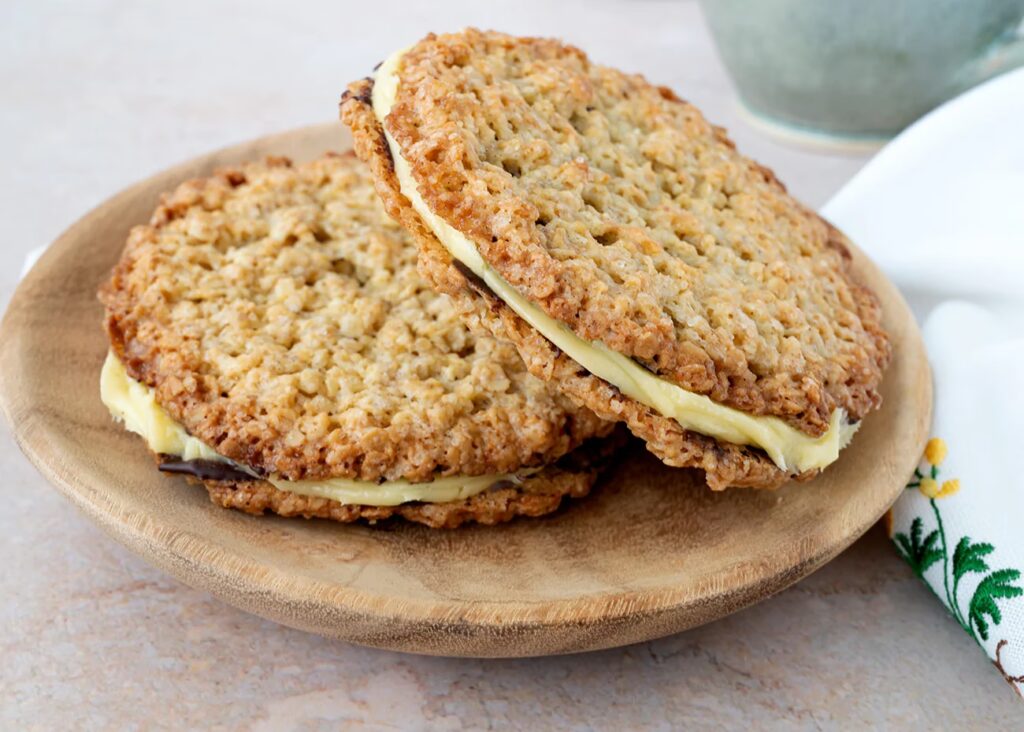 Færdigbagte havregrynscookies opbevaret i en lufttæt beholder ved stuetemperatur holder sig typisk friske og bløde i 3-5 dage.