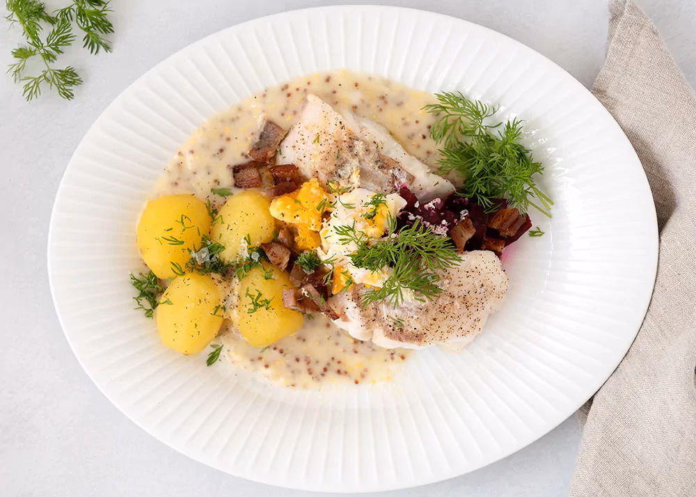 | Typisk Anvendelse | Til at lave sennep, krydderi (især fiskeretter) | Tilbehør/ingrediens til kogt torsk |