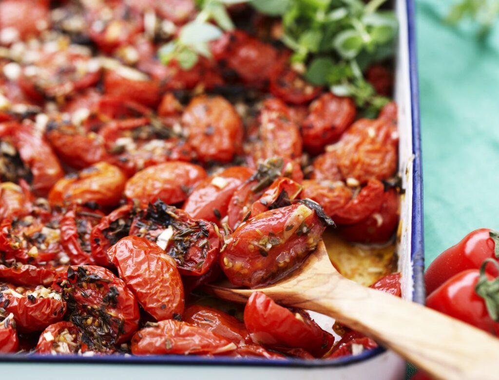 Tomater passer perfekt ind i denne kostplan. De kan bruges på utallige måder og bidrager med både lycopen, fibres og præbiotisk effekt. For at maksimere sundhedsfordelene, især optagelsen af lycopen, er det en god idé at inkludere tilberedte tomater med lidt sundt fedt i din kost regelmæssigt.
