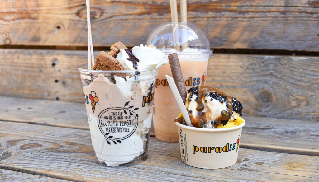 Paradis tilbyder både sorbet, som er naturligt plantebaseret, og specifikke isvarianter lavet på havredrik, der er 100% plantebaserede.