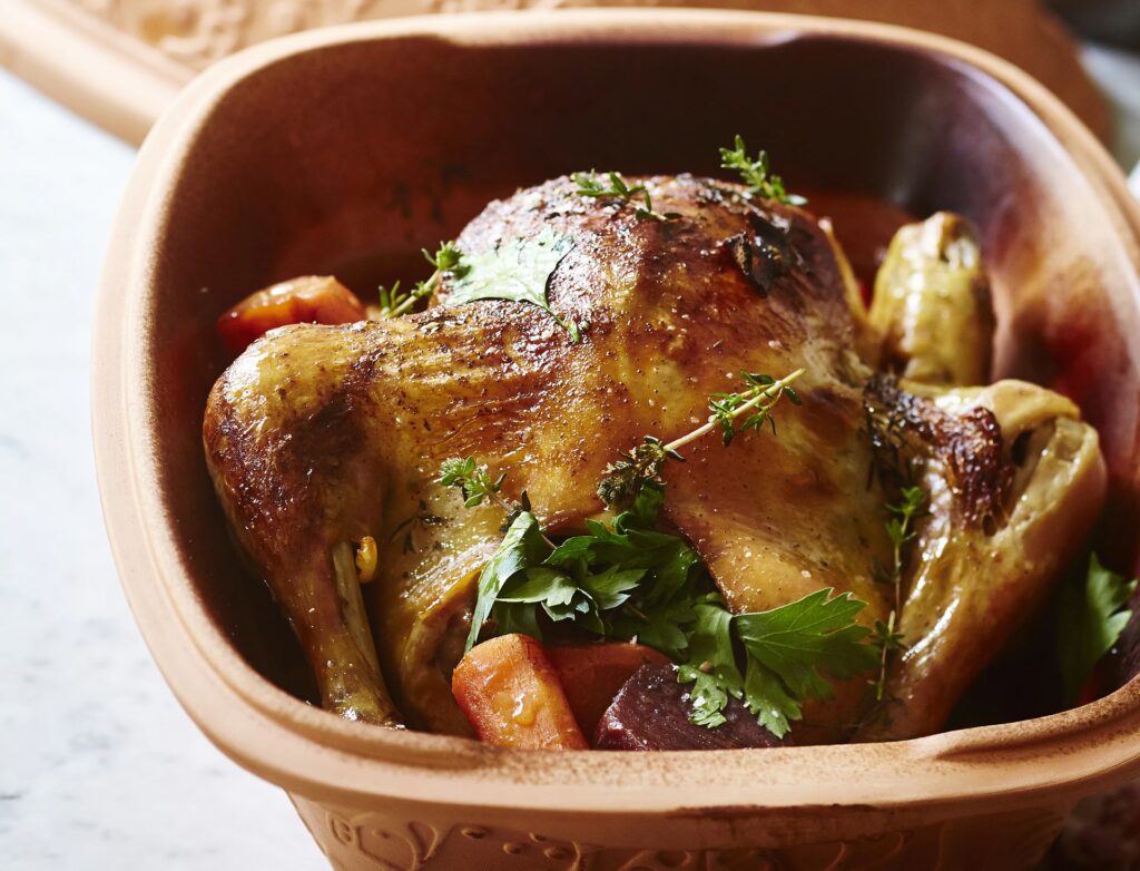 - Hele fjerkræ: En hel kylling bliver utrolig saftig og mør i en stegeso.
