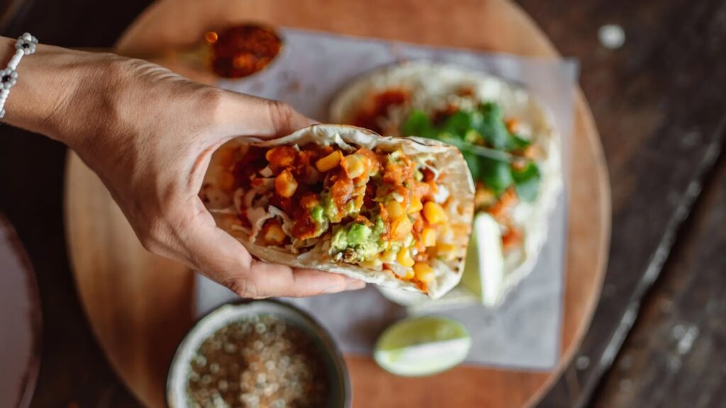 Den måske mest kendte mexicanske ret. Tacos består af en tortilla (oftest majs, men hvede bruges også), fyldt med kød, fisk, bønner, grøntsager eller en kombination. De toppes traditionelt med salsa, guacamole, løg, koriander og en klat creme fraiche eller ost. Variationerne er uendelige.
