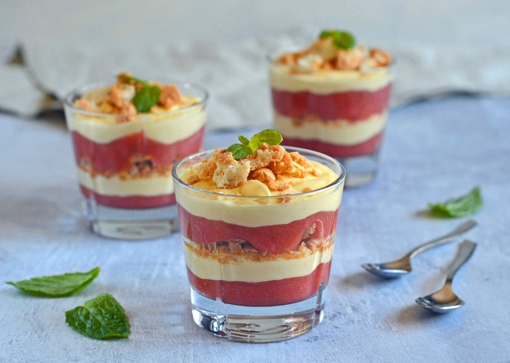 Opskrift på Klassisk Rabarbertrifli med Makroner og Creme